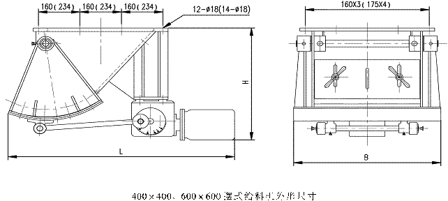 GZB擺式給料機由殼體、弧板、鄂板、驅動裝置、閘板等組成,當電機開動后經減速機、曲柄連桿機構拖動弧板作圓弧往復運動,將煤均勻地卸到其他設備上。
